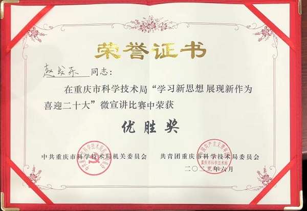 比賽要求圍繞新時代廉潔文化建設(shè)、成渝地區(qū)雙城經(jīng)濟圈建設(shè)等,結(jié)合自身學(xué)習(xí)感悟,以飽滿的精神、真摯的情感、生動的事例、質(zhì)樸的語言,從不同維度和視角深入宣講我國科學(xué)家、身邊的“科學(xué)家”及科技管理者等優(yōu)秀的廉潔家風(fēng)家訓(xùn)故事,深入宣講重慶推動成渝地區(qū)雙城經(jīng)濟圈建設(shè)、建設(shè)具有全國影響力的科技創(chuàng)新中心的創(chuàng)新舉措和發(fā)展成效。趙發(fā)東以袁隆平院士科學(xué)精神發(fā)展階段為背景宣講科學(xué)家精神,袁隆平院士的先進事跡和崇高精神永遠是大家學(xué)習(xí)的榜樣。最終趙發(fā)東榮獲優(yōu)勝獎。