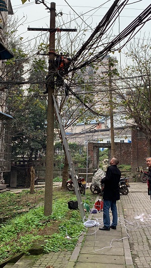 經(jīng)光機所退休職工反映,位于九龍坡區(qū)石小路長石村35號的光機所老所區(qū)路燈年久失修,給當?shù)鼐用裆顜聿槐?。為了響應國家號召,積極參與服務(wù)社區(qū)活動,經(jīng)光機所所務(wù)會討論決定,于2019年3月12日開始,經(jīng)過兩天的排查及維修,對該地區(qū)所有路燈及老化線路進行了更換,維修共更換燈泡38個,新增7個燈具,替換老化線路300米。